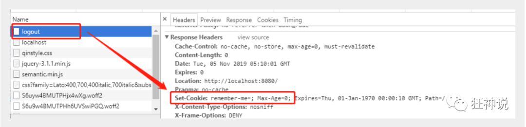 3、我们点击注销的时候,可以发现,spring security 帮我们自动删除了这个 cookie