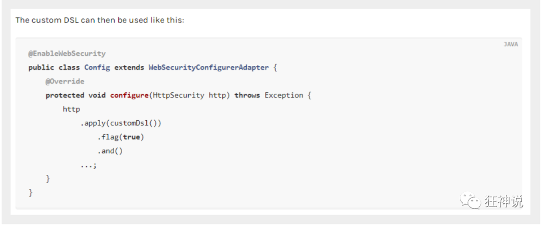 package com.kuang.config; import org.springframework.security.config.annotation.web.builders.HttpSecurity; importorg.springframework.security.config.annotation.web.configuration.EnableWebSecurity; importorg.springframework.security.config.annotation.web.configuration.WebSecurityConfigurerAdapter; @EnableWebSecurity // 开启WebSecurity模式 public class SecurityConfig extends WebSecurityConfigurerAdapter { @Override protected void configure(HttpSecurity http) throws Exception { } }