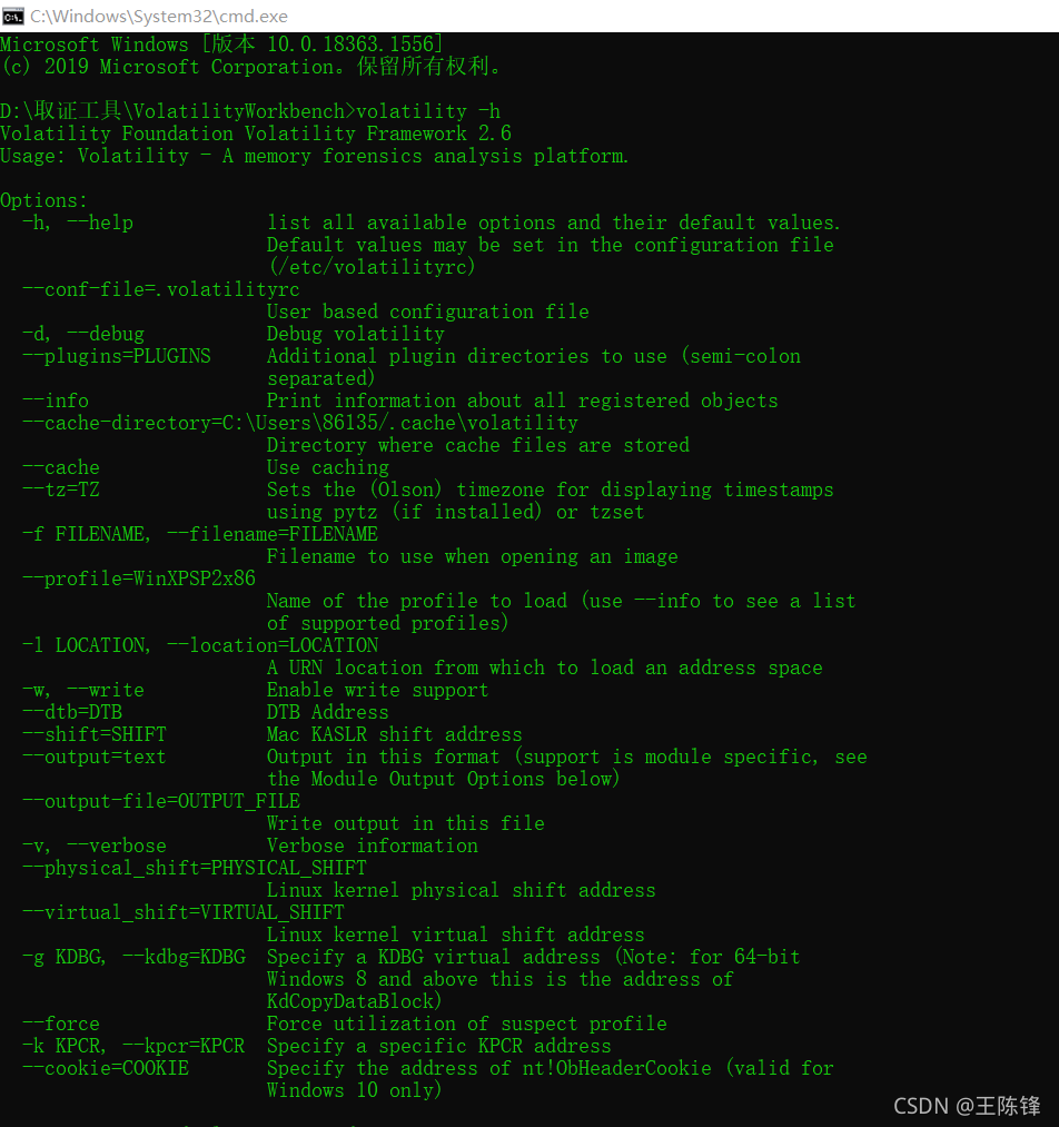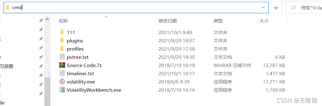 在volatility存放文件当中,输入cmd,调出命令行。