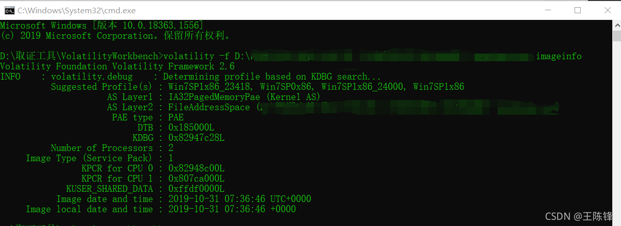 命令:volatility -f 这边复制进来你的镜像文件 imageinfo