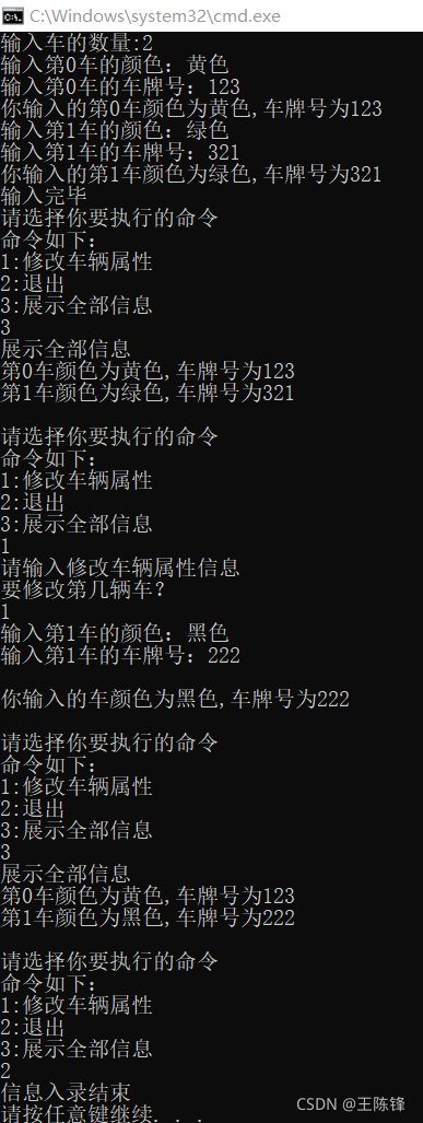 (结构体+指针)(外加自定义车辆数量和选择目标车辆修改)定义“车”结构体,实现改变车颜色,车牌操作。