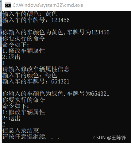 printf("命令如下:\n1:修改车辆属性\n2:退出");
