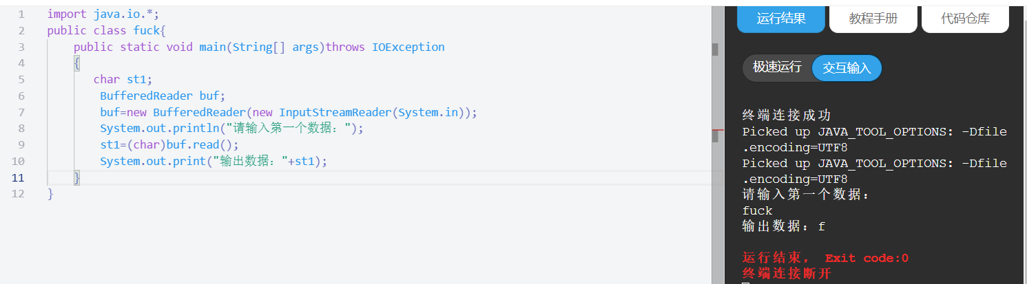 Java从键盘输入数据,输入一串字符,输出头个字符。