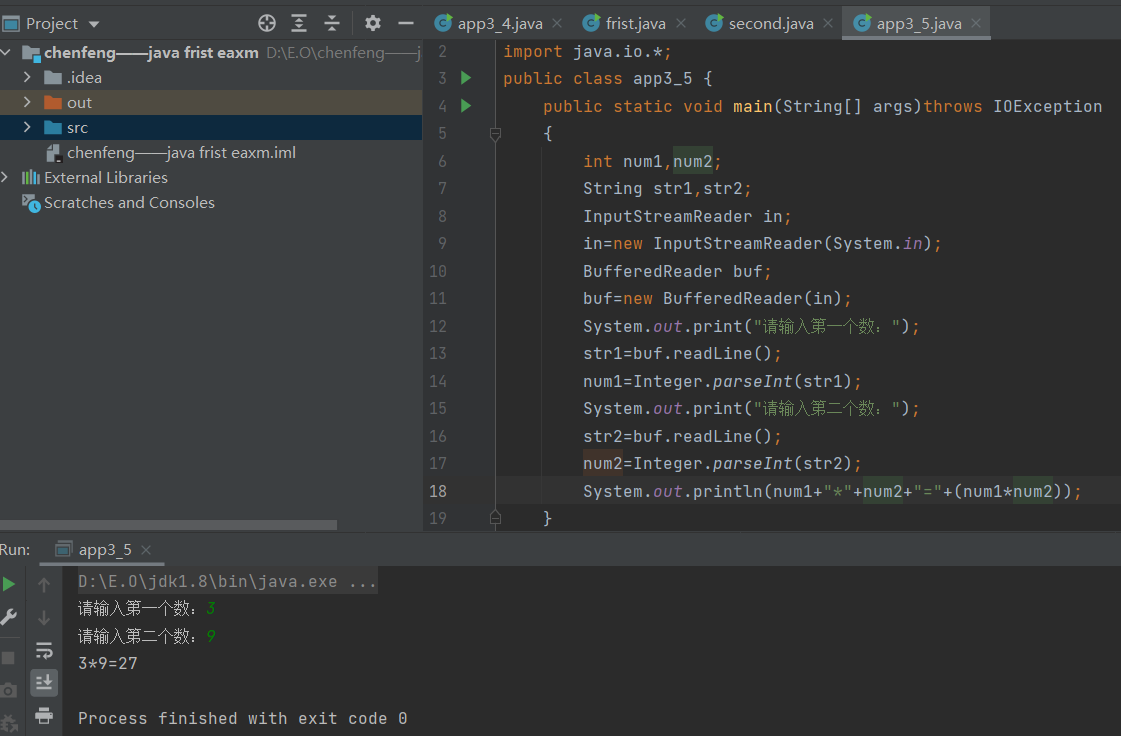 System.out.print("请输入第一个数:");