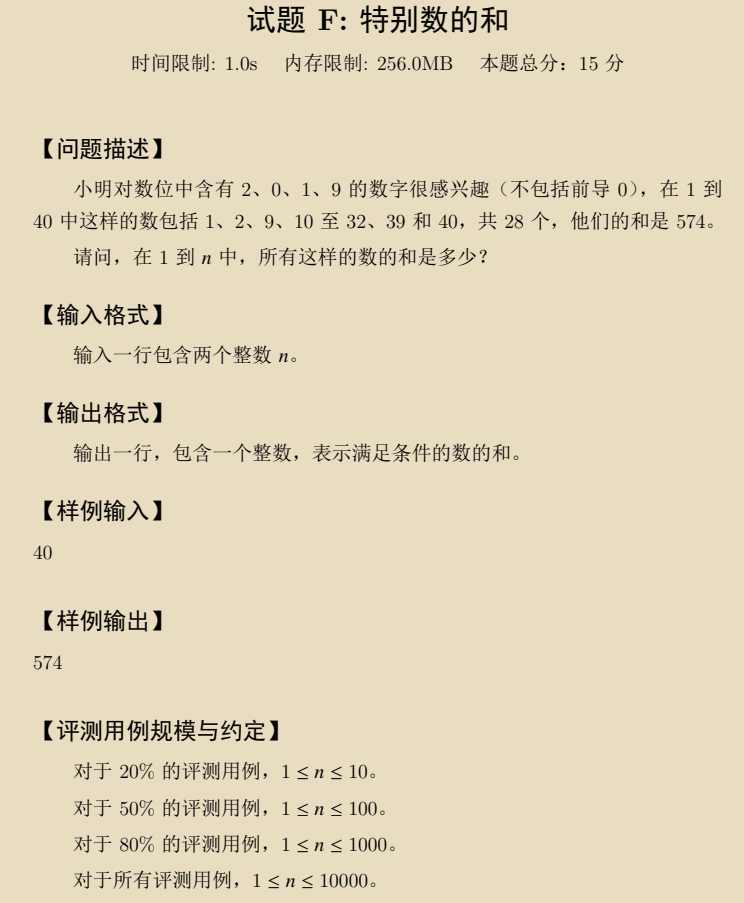 2019年第十届蓝桥杯C/C++ 省赛B组试题-F:特别数的和