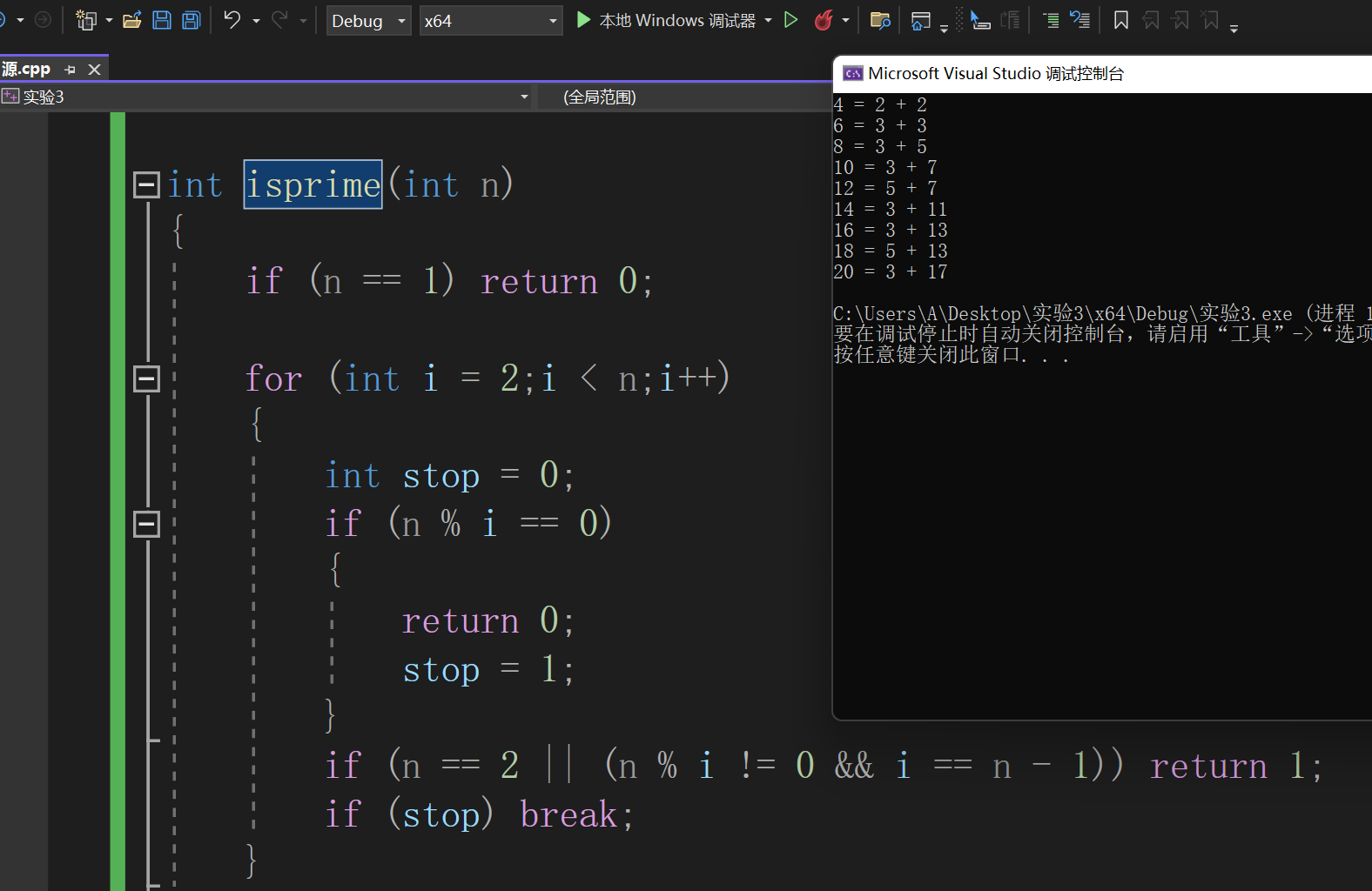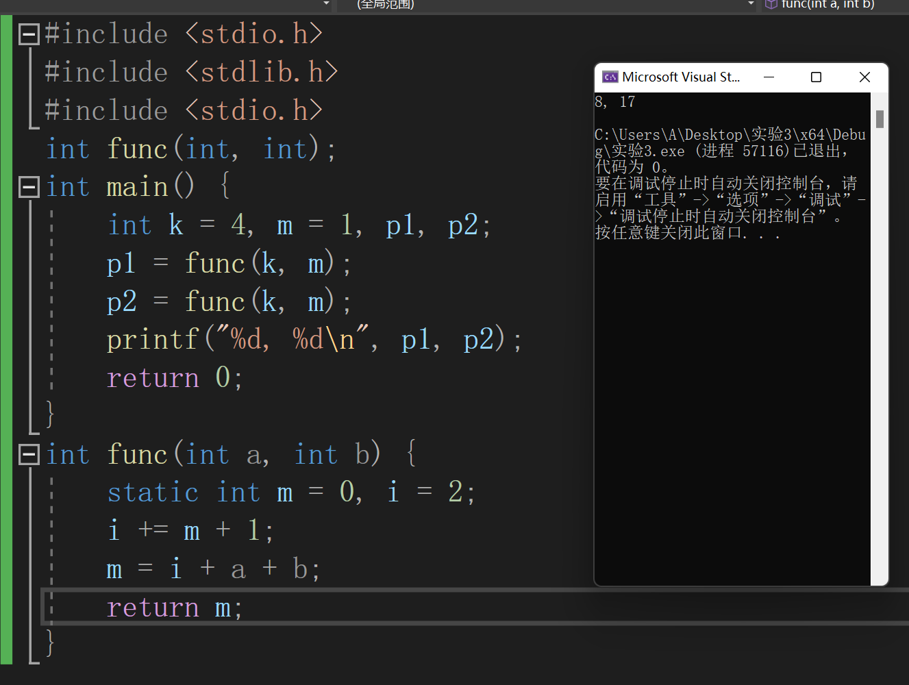 #include <stdio.h> int func(int n, int m); int main() { int n, m; printf("请输入整数m,n:"); while (scanf_s("%d%d", &n, &m) != EOF) printf("n = %d, m = %d, C%d%d = %d\n", n, m,n,m, func(n, m)); return 0; } int func(int n, int m) { int t; if (n < m) return 0; if (n == m || m == 0) return 1; else t = func(n - 1, m) + func(n - 1, m - 1); return t; }