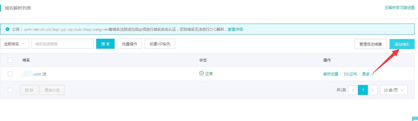 ①、添加域名