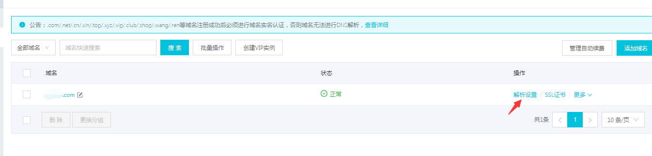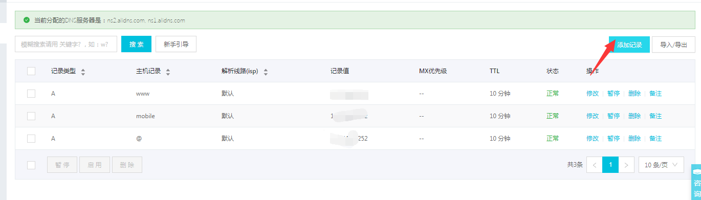 1)、到购买域名平台修改DNS修改为阿里云的DNS,一般需要两个分别是ns1.alidns.com,ns2.alidns.com。