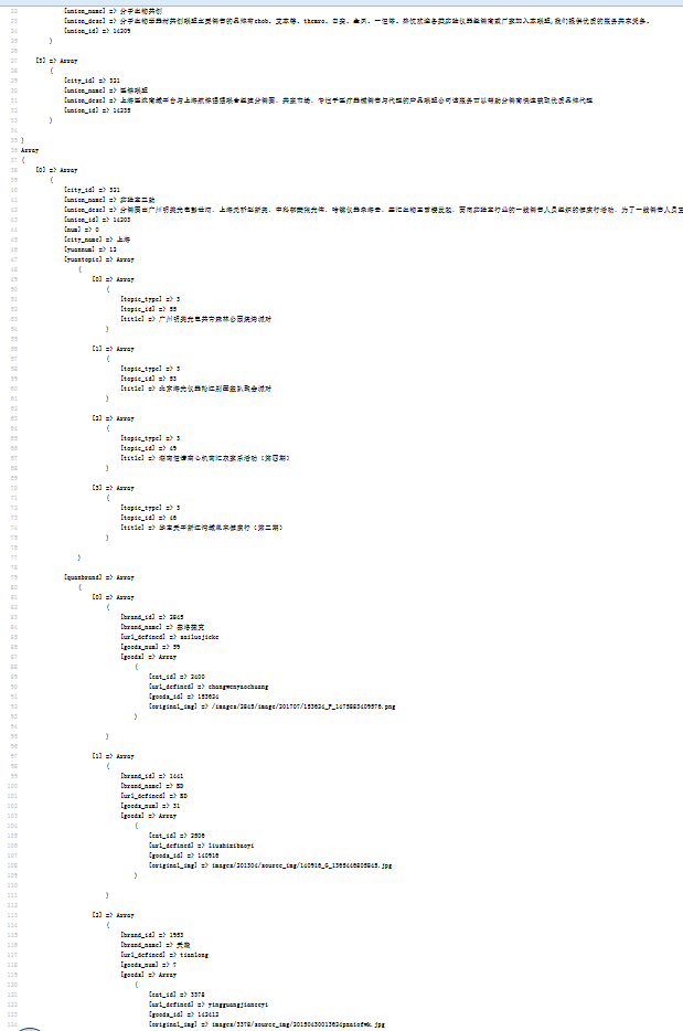 //置顶圈子查询 $topquanAll=$db->getAll("select city_id,union_name,union_desc,union_id from ecs_trader_minfo where is_show=1 order by is_master_priority DESC limit 4"); print_r($topquanAll); foreach($topquanAll as $tk=>$tv){ $topquanAll[$tk]['num']=$tk; /*echo $tk.'*'; print_r($tv);*/ //城市查询 $cityRow=$db->getRow("select region_name from ecs_region where region_id='".$tv['city_id']."'"); $topquanAll[$tk]['city_name']=$cityRow['region_name']; //成员查询 $yuannum=$db->getRow("select count(DISTINCT minfo_user_id) as num from ecs_minfo_user where union_id='".$tv['union_id']."' and is_quanzhu=0 and is_quan_check=1"); /*print_r($yuannum);*/ $topquanAll[$tk]['yuannum']=$yuannum['num']; //查询圈成员发布的圈活动 $yuantopic = $db->getAll("SELECT topic_type,topic_id,title FROM ecs_topic where user_id in (select minfo_user_id as user_id from ecs_minfo_user where union_id='".$tv['union_id']."') and show_type=1 order by end_time desc limit 4"); $size=sizeof($yuantopic); $topquanAll[$tk]['yuantopic']=$yuantopic; if($size<4){ //查询该圈发布的技术文章 $limit=4-$size; $zhishiku=$db->getAll("select c.cat_id,c.url_defined,a.title,a.article_id from ecs_article as a join ecs_category as c on a.cat_id=c.cat_id where a.user_id in (select minfo_user_id as user_id from ecs_minfo_user where union_id='".$tv['union_id']."') and a.is_open=1 order by a.article_id DESC limit $limit"); $topquanAll[$tk]['zhishiku']=$zhishiku; } //查询圈品牌 $quanbrand=$db->getAll("select b.brand_id,b.brand_name,b.url_defined from ecs_brand as b join ecs_trader as t on b.brand_id=t.brand_id where t.user_id in (select minfo_user_id as user_id from ecs_minfo_user where union_id='".$tv['union_id']."') and t.is_supplier_check=1 group by b.brand_id order by b.active_score DESC limit 6"); foreach($quanbrand as $bk=>$bv){ //查询该品牌下商品数量 $goodsnum=$db->getRow("select count(*) as num from ecs_goods where brand_id='".$bv['brand_id']."'"); $quanbrand[$bk]['goods_num']=$goodsnum['num']; //获取该品牌下点击量最多的商品 $goodsRow=$db->getRow("select g.cat_id,c.url_defined,g.goods_id,g.original_img from ecs_goods as g join ecs_category as c on c.cat_id=g.cat_id where g.brand_id='".$bv['brand_id']."' order by g.click_count DESC"); $quanbrand[$bk]['goods']=$goodsRow; } $topquanAll[$tk]['quanbrand']=$quanbrand; } print_r($topquanAll); exit;