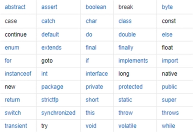 标识符:Java所有的组成部分都需要名字。类名、变量名以及方法名都被称为标识符。