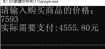 printf("实际需要支付:%.2f元\n",a*0.6);