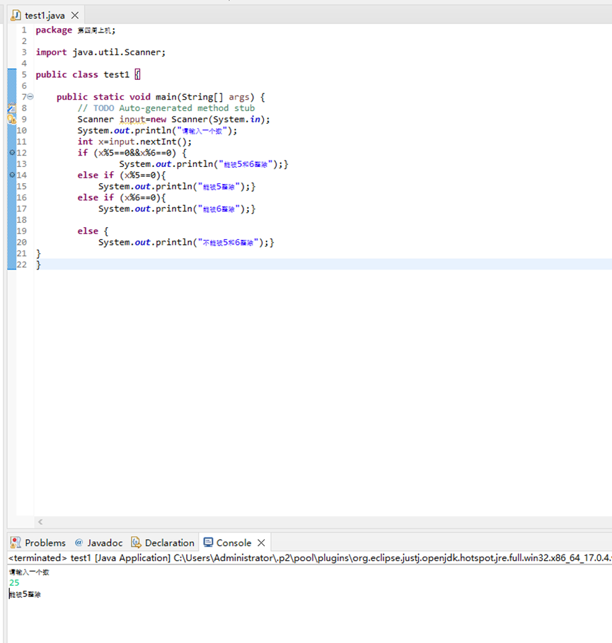5、判断一个数字是否能被5和6同时整除(打印能被5和6整除),或只能被5整除(打印能被5整除 ),或只能被6整除,(打印能被6整除),不能被5或6整除,(打印不能被5或6整除)