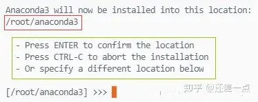 默认安装位置 /root/anaconda3。按回车确认,ctrl+c退出,或者输入其他安装位置。