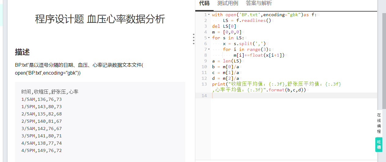 BP.txt”是以逗号分隔的日期、血压、心率记录数据文本文件( open('BP.txt',encoding="gbk"))