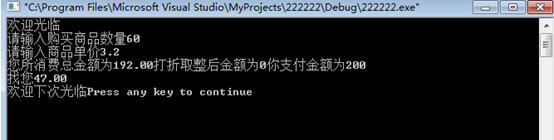 printf("找您%.2f\n欢迎下次光临",zhao);