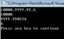 main(){ int a; float b; char c; scanf("%d%f%c",&a,&b,&c); printf("%d\n%f\n%c\n",a,b,c);}