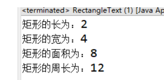 System.out.println("长为"+length+"宽为"+width+"面积为"+getArea()+"周长为"+getPer());
