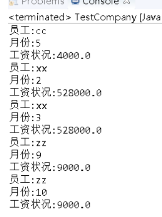 System.out.println("员工:"+test.name+"\n月份:"+month+"\n工资状况:"+test.getSalary(month));