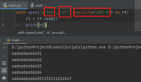 with open('a.txt', 'r', encoding='utf-8') as file: file.read()