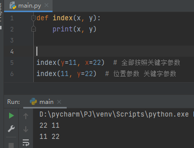 index(y=22,11) # 关键字参数必须写在位置参数的后面