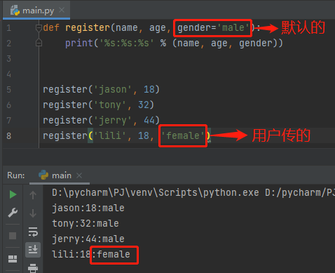 在函数的定义阶段就给形参赋值了,就称之为默认参数,在用户不传该参数的时候,直接用默认值,用户要是传了参数,还是用用户传的那个。