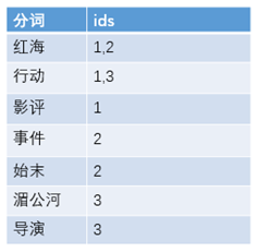 搜索“红海行动”,那么搜索引擎是如何能将两者匹配上的呢?等到用户搜索的时候,会把搜索的关键词也进行分词,会把“红海行动”分词分成:红海和行动两个词。这样的话,先用红海进行匹配,得到id=1和id=2的记录编号,再用行动匹配可以迅速定位id为1,3的记录。那么全文索引通常,还会根据匹配程度进行打分,显然1号记录能匹配的次数更多。所以显示的时候以评分进行排序的话,1号记录会排到最前面。而2、3号记录也可以匹配到。倒排索引结构: