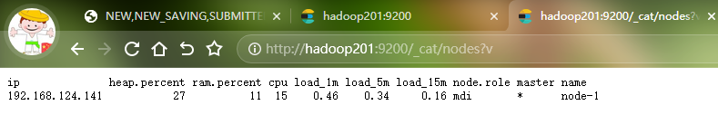 http://hadoop201:9200/_cat/nodes?v 查看单节点效果
