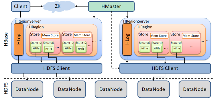 - WAL:预写日志由于数据要经过MemStore排序后才能刷写到HFile,但把数据保存在内存中会有很高的概率导致数据丢失,为了解决这个问题,数据会先写在一个叫做Write-Ahead logfile的文件中,然后再写入MemStore中。所以在系统出现故障的时候,数据可以通过这个日志文件重建。