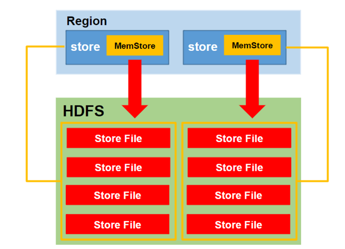- StoreFile:保存实际数据的物理文件,StoreFile以HFile的形式存储在HDFS上。每个Store会有一个或多个StoreFile(HFile),数据在每个StoreFile中都是有序的。