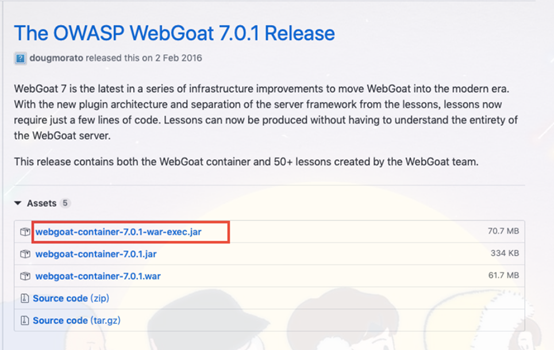 (1)下载7.0.1版本的webgoat
