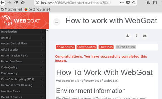 本实践的目标理解常用网络攻击技术的基本原理,做不少于7个题目,共3.5分。包括(SQL,XSS,CSRF)。Webgoat实践下相关实验。