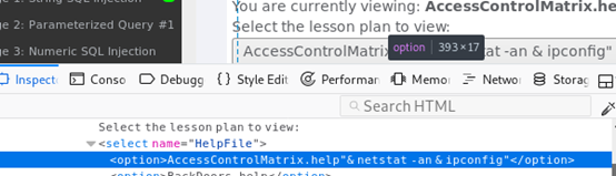 在acesscontrolmartix.help这一栏右键选择插入审查元素,后面添加命令语句“&netstat -按& ipconfig”,点击view运行。