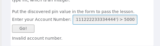 101 AND ((SELECT pin FROM pins WHERE cc_number='1111222233334444') > 10000 );