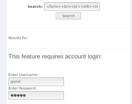 <form> <br><br><HR><H3>This feature requires account login:</H3 ><br><br> Enter Username:<br><input type="text" id="user" name="user"><br> Enter Password:<br><input type="password" name = "pass"><br> </form><br><br><HR>