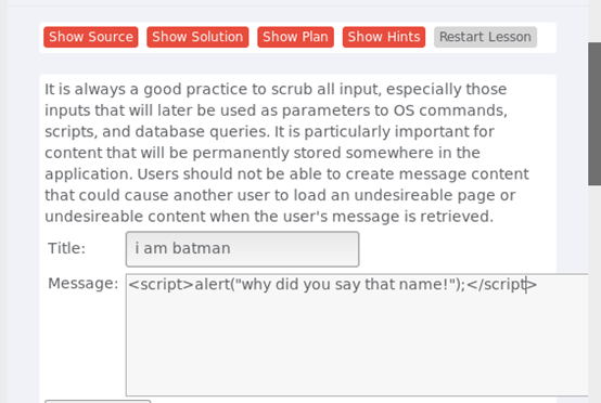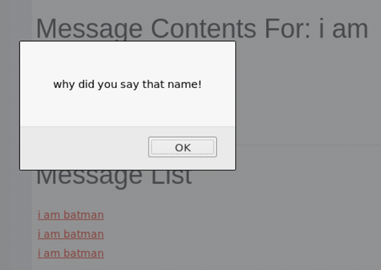 在title中任意输入字符,留言板中输入<script>alert("why did you say that name!");</script>