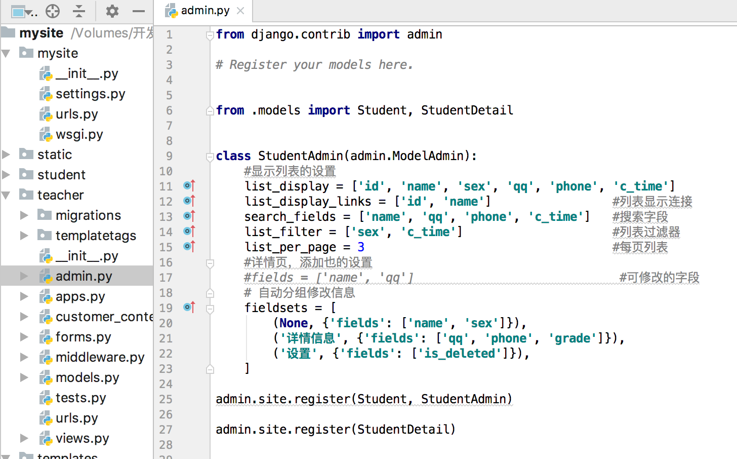 list_display = ['id', 'name', 'sex', 'qq', 'phone'] ##模型里面字段名一一对应,和显示页一一对应