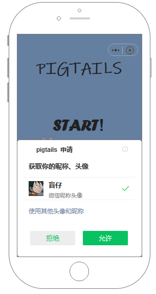 游戏登录界面:点击"拒绝"则不能进入游戏,点击"允许"则进入模式选择界面。