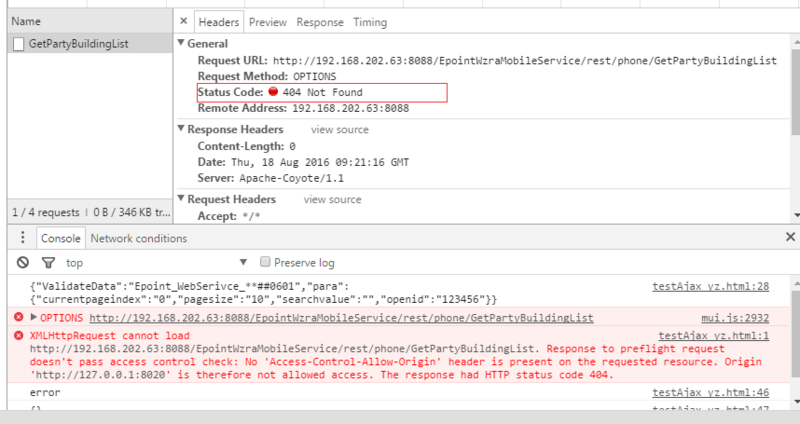 第一种现象:No 'Access-Control-Allow-Origin' header is present on the requested resource,并且The response had HTTP status code 404