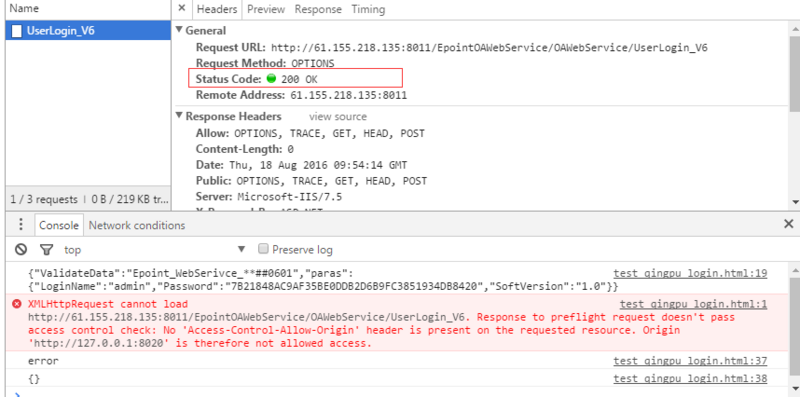 第三种现象:No 'Access-Control-Allow-Origin' header is present on the requested resource,并且status 200