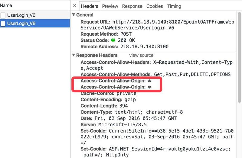 Origin:*,请去除即可 - IIS服务器中,重复配置了