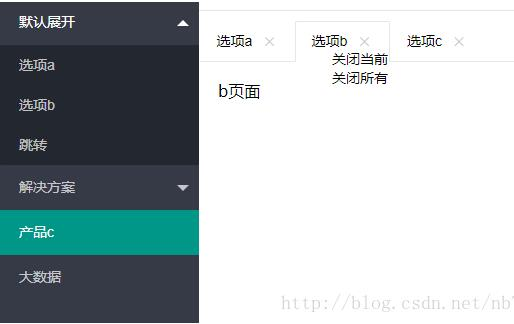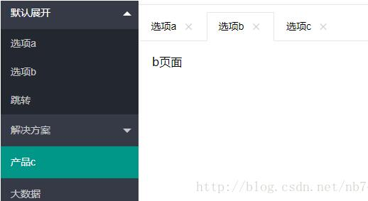 这是element 中的tabAdd方法,其中的content可以是一个iframe页面,在此例中,我就是传递了一个简单的页面,这就实现了不同页面间的一些切换。