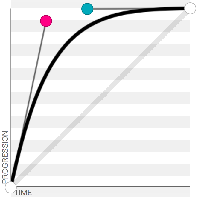 贝塞尔曲线可以简单的看作是时间-距离曲线,斜率就是速度。因为转盘的速度肯定是先快后慢,随便拉一条。