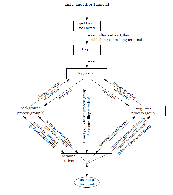 对于前台、后台作业以及终端驱动程序的作业控制功能如下图:
