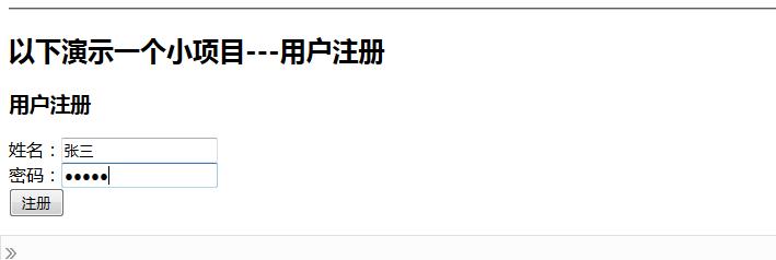 <h2>以下演示一个小项目---用户注册</h2>