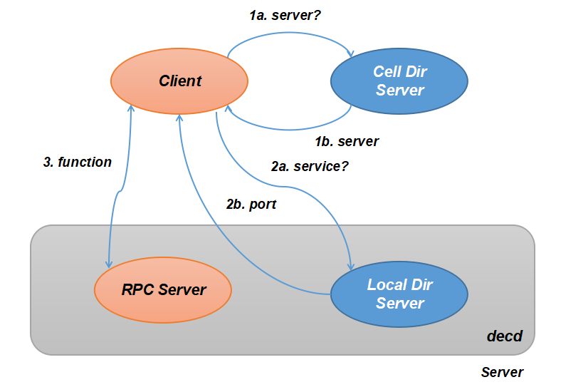 对于Sun RPC,服务器只向本地名称服务器(portmapper)来注册它的{程序号到端口映射}。在DCE下,服务器在本地机器上使用RPC守护进程(名称服务器)来注册它的端点(端口),并将它的程序名称注册到它的cell目录服务器上的机器映射。当客户端想要与RPC服务器建立通信的时候,它首先要求它的cell directory server定位服务器所在的机器。然后,客户端与该机器上的RPC守护进程进行对话,以获取服务器进程的端口号。DCE也支持更为复杂的跨cell搜索的问题。