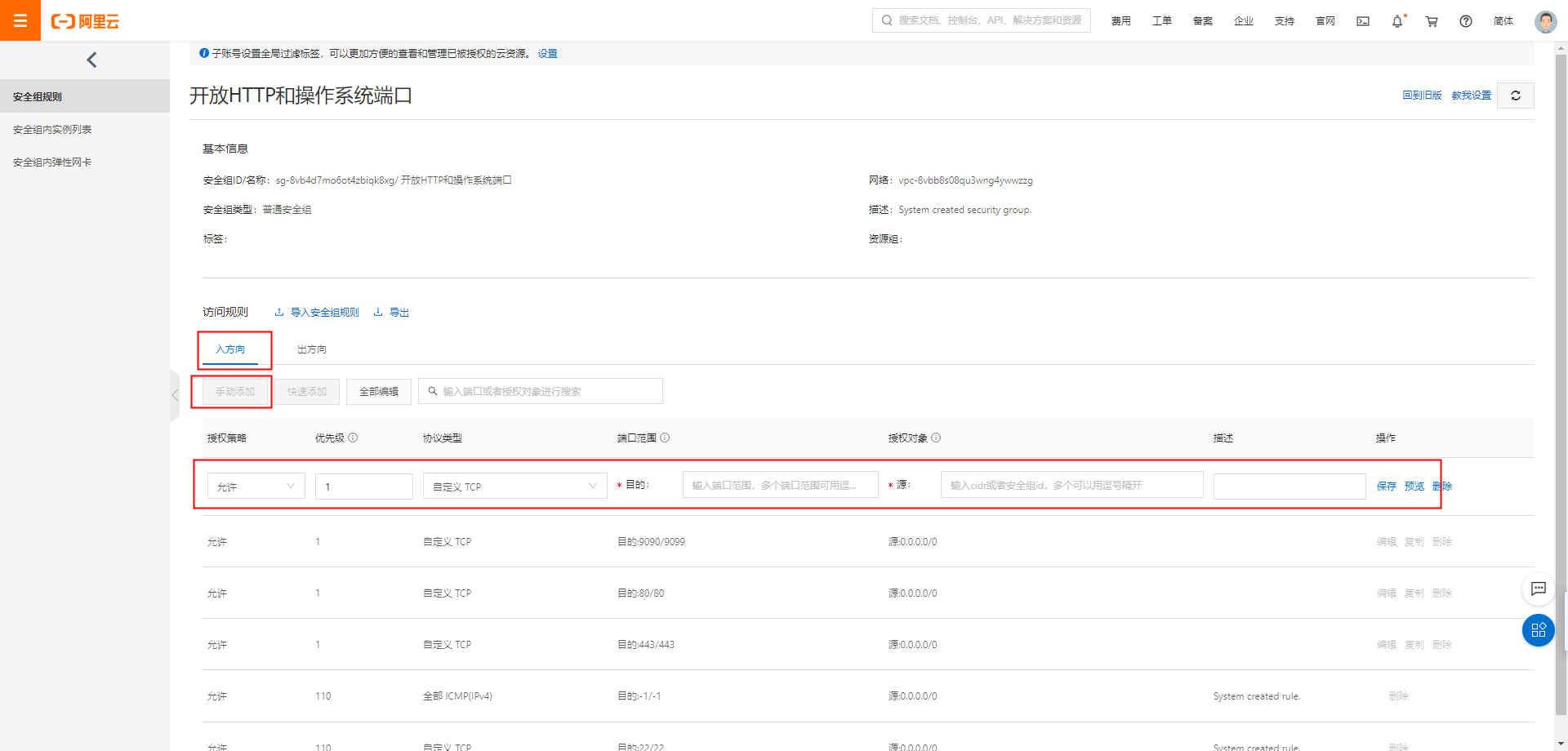 第三,公网入方向项的安全组按照下面的要求进行设置或修改。
