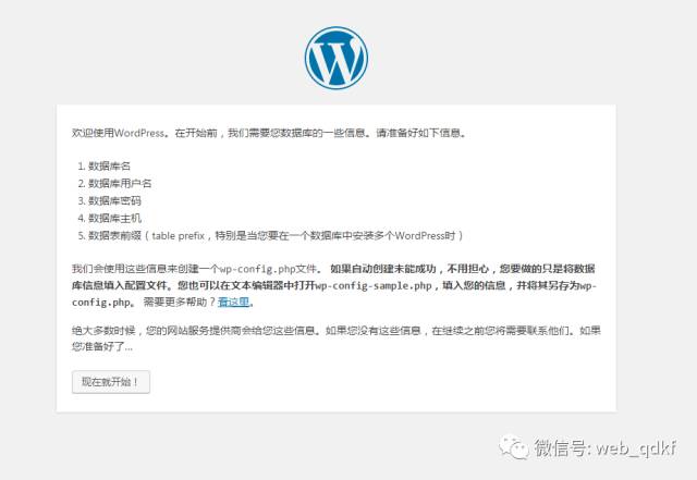 第一,点击“现在就开始”按钮,就可以开始安装wordpress程序了。