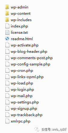 在安装wordpress网站程序之前,你需要将之前下载下来的wordpress程序,进行解压,解压后,里面有一个wordpress的文件夹,打开文件夹,你会看到如下图的文件。