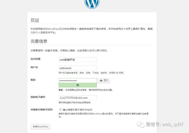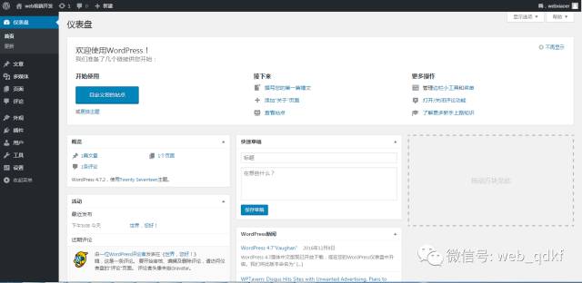 第五,点击“安装wordpress”,稍等片刻,则程序安装完成后,你就会看到此界面: