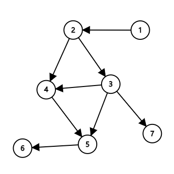 该图的拓扑序是 1,2,3,4,7,5,6,当然也可以是 1,2,3,4,5,6,7,还可以是1,2,3,4,5,7,6。